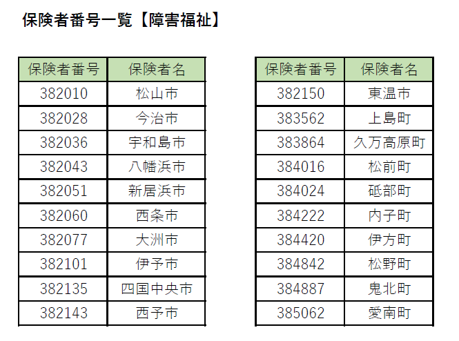 保険者番号一覧【障害福祉】