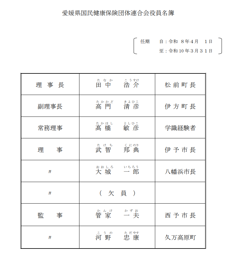 | 昭和34年1月1日 | 同法改正により、愛媛県国民健康保険団体連合会として現在に至る |